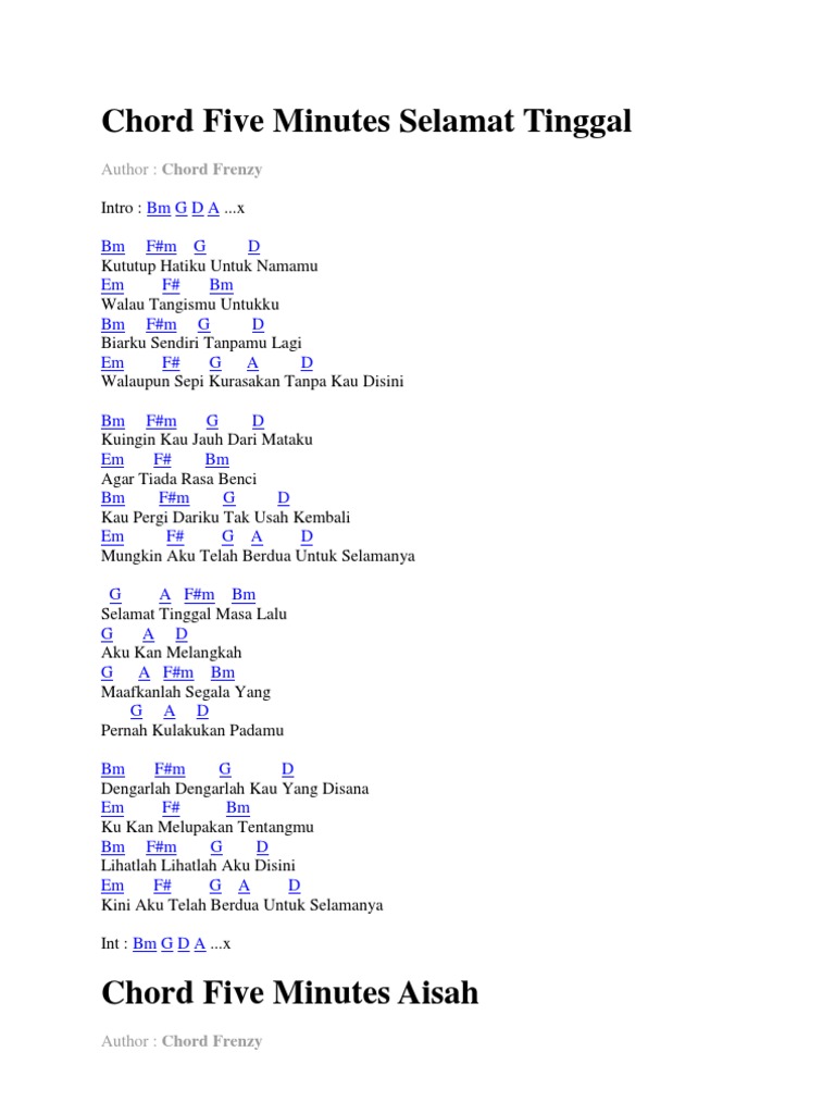 Em d aisyah kau pergi ke kota am em tinggalkan aku yang sendirian em d aisah kau berjanji pulang am em menemuiku yang kesepian c d aku disini.terus menanti. Chord lagu aisyah five minutes. D e cm aku disini terus menanti ho. Home of the best guitar chord learning tool in the world. A e ku akan tetap berdiri.